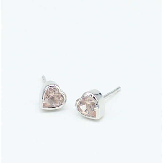 Set of 5 pairs - Heart Rose Quartz Sterling Silver Stud Earrings