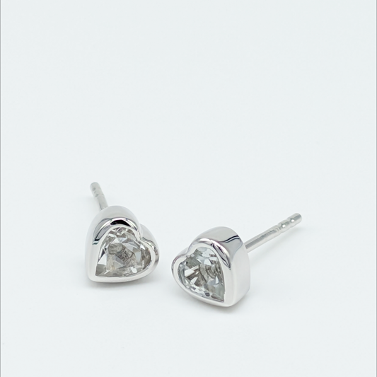 Set of 5 pairs - Heart White Topaz Sterling Silver Stud Earrings