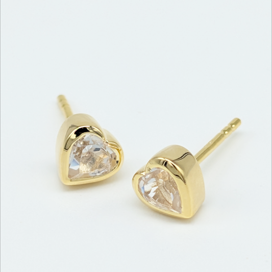 Set of 5 pairs - Heart White Topaz 18k Vermeil Stud Earrings