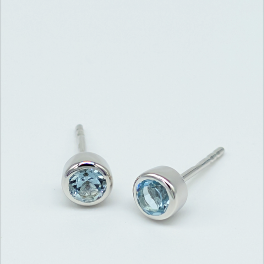 Set of 5 pairs - Round Blue Topaz Sterling Silver Stud Earrings