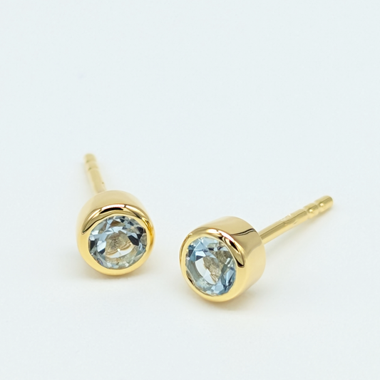 Set of 5 pairs - Round Blue Topaz 18k Vermeil Stud Earrings