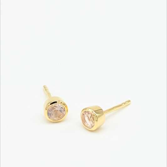 Set of 5 pairs - Round Rose Quartz 18k Vermeil Stud Earrings