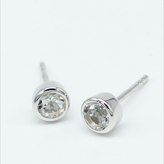 Set of 5 pairs - Round White Topaz Sterling Silver Stud Earrings