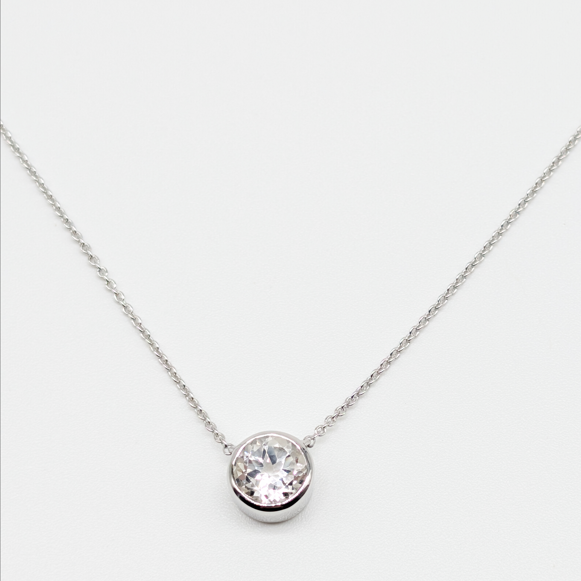 Set of 2 - Round White Topaz Sterling Silver Necklaces