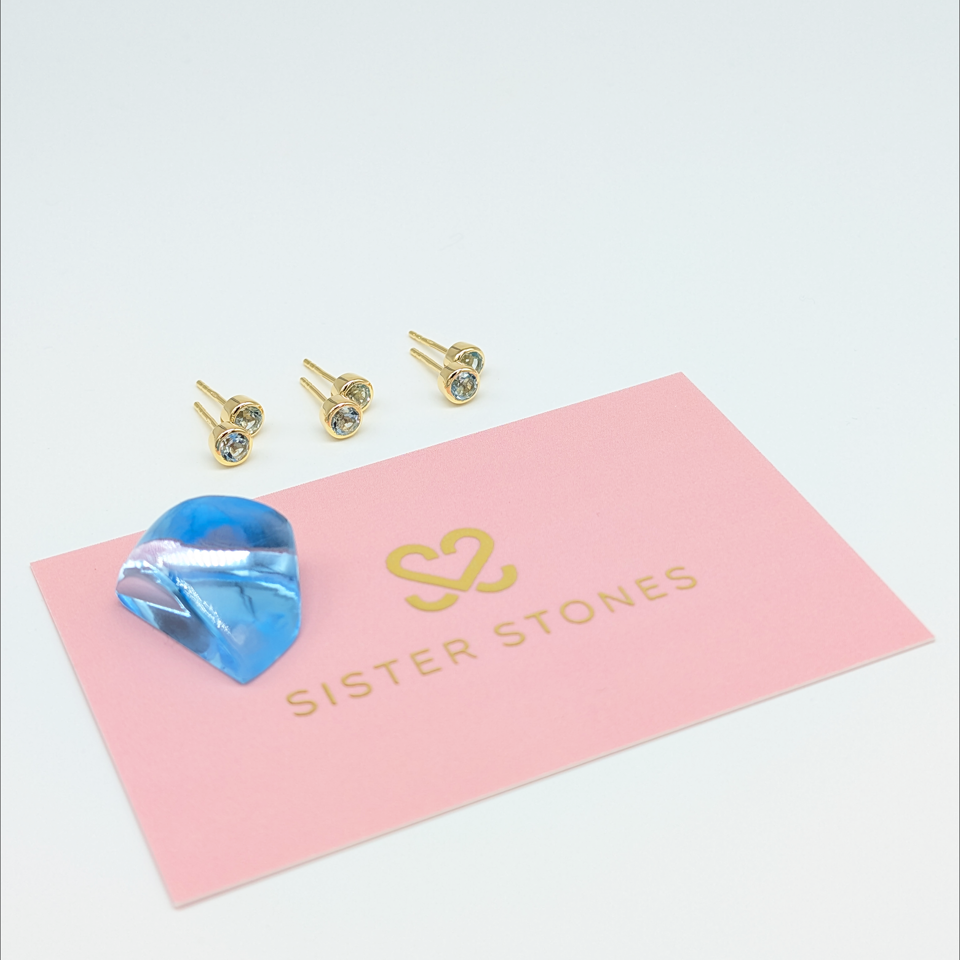 We've taken a single blue topaz gemstone, the stone of harmony and loyalty, and divided it amongst three pairs of Sister Stones earrings that will always share a connection, and signify your bond.