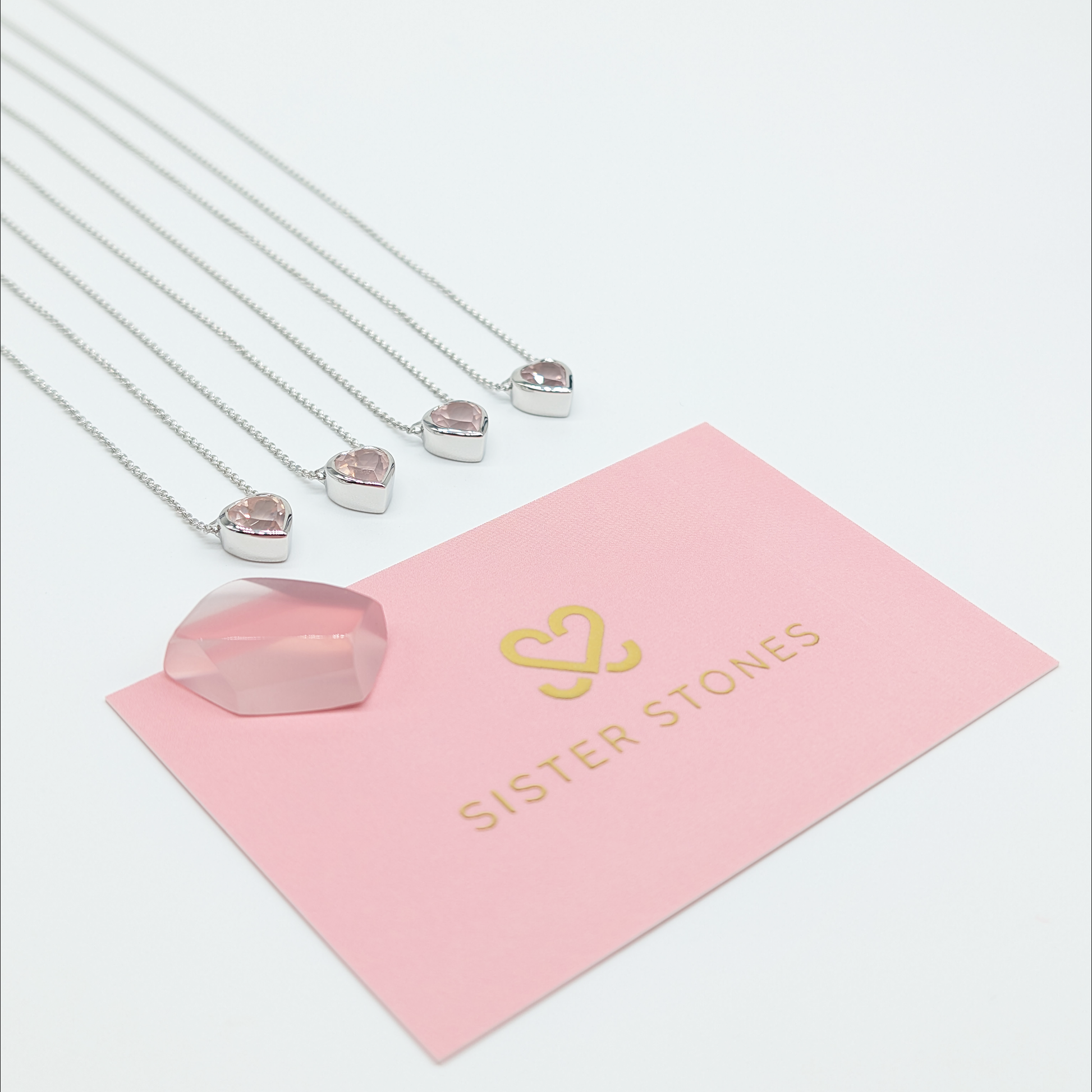 We've taken a single rose quartz gemstone, the stone of love and compassion, and divided it amongst four Sister Stones necklaces that will always share a connection, and signify your bond.