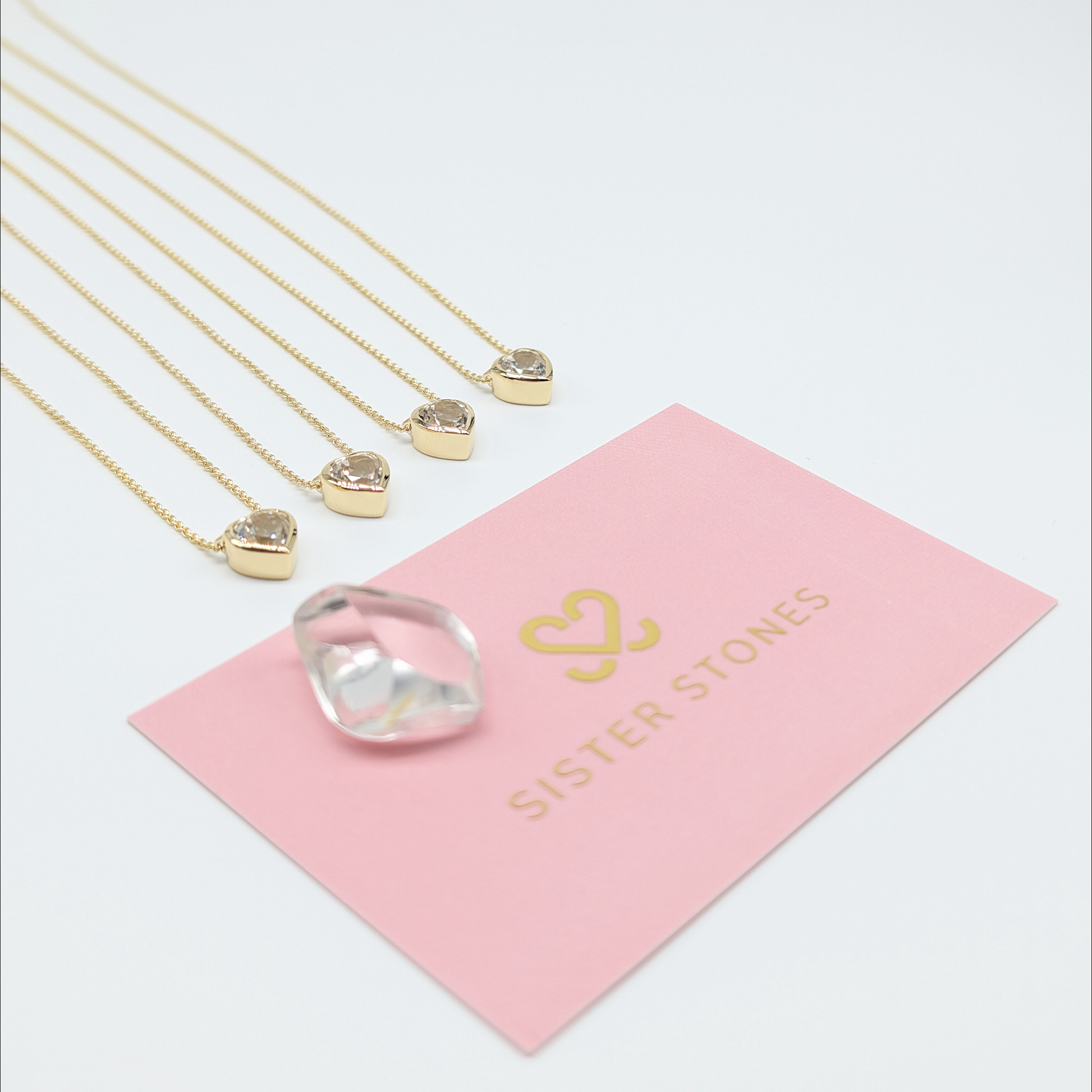 We've taken a single white topaz gemstone, the stone of friendship and honesty, and divided it amongst four Sister Stones necklaces that will always share a connection, and signify your bond.
