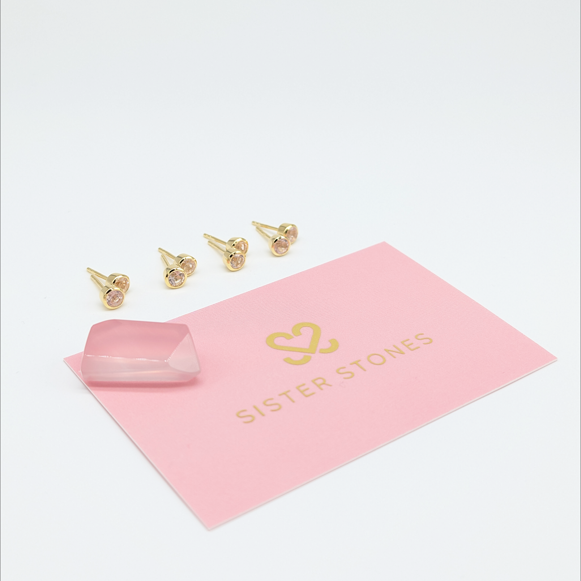We've taken a single rose quartz gemstone, the stone of love and compassion, and divided it amongst four pairs of Sister Stones earrings that will always share a connection, and signify your bond.