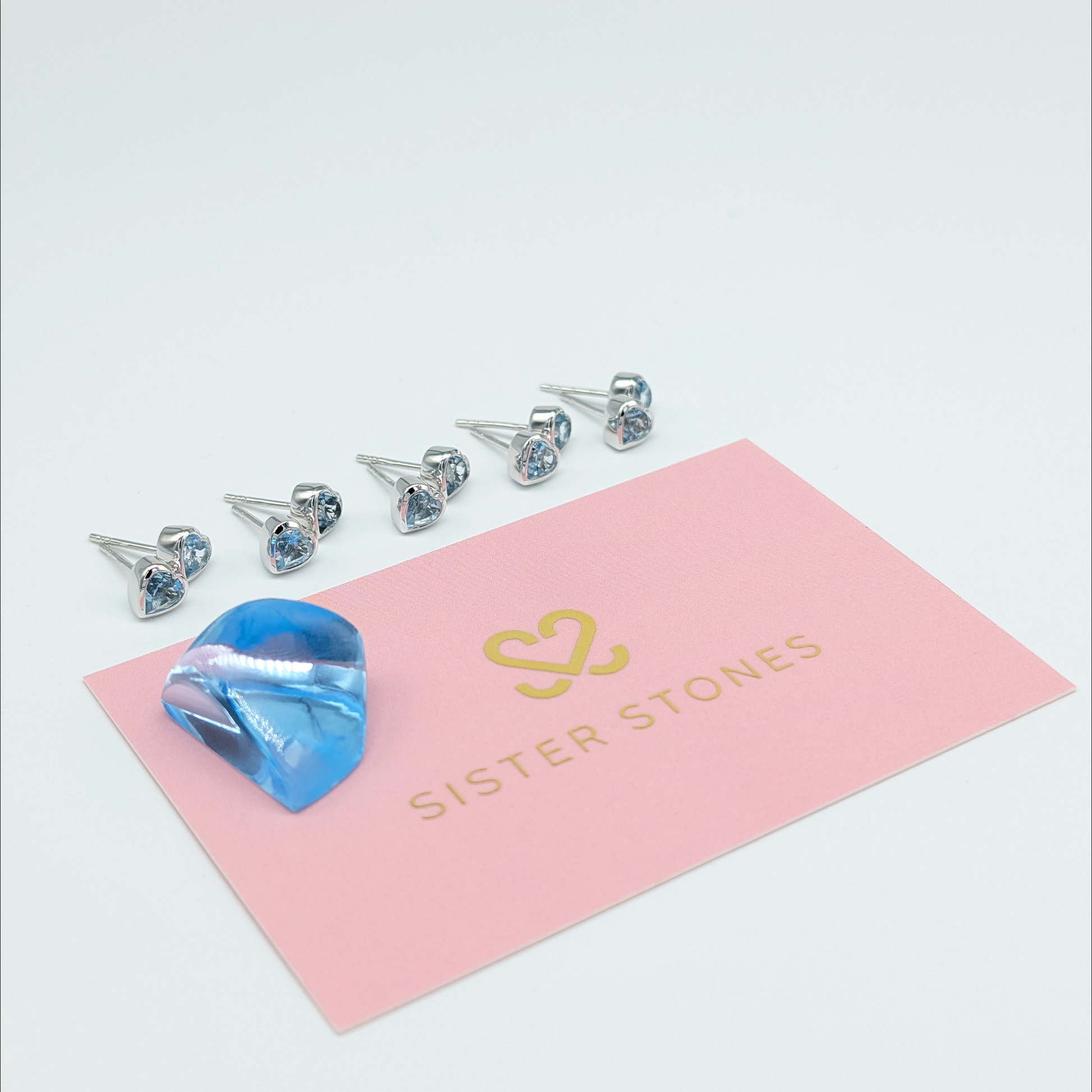 We've taken a single blue topaz gemstone, the stone of harmony and loyalty, and divided it amongst five pairs of Sister Stones earrings that will always share a connection, and signify your bond.